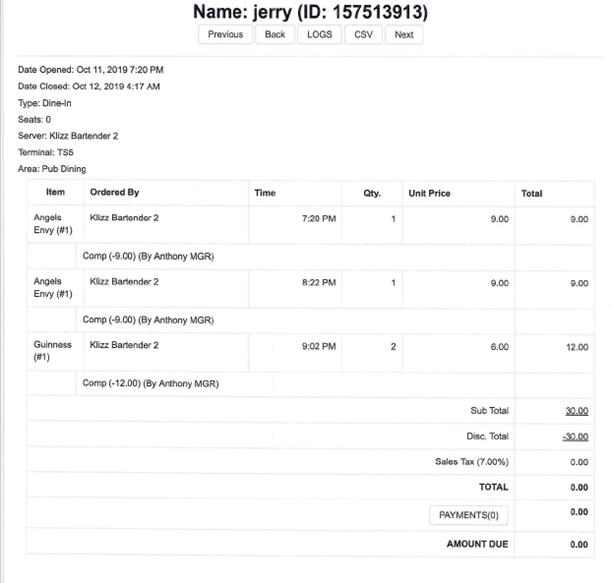 Jerry’s bar tab from that night showed 4 drinks total and the last drink was rung in at 9:02pm. The incident occurred at around 3:20am, merely 6 hours later. In fact, during the depositions of the primary male officer, the officer acknowledged that he would have allowed Jerry to drive home as he did not appear intoxicated.